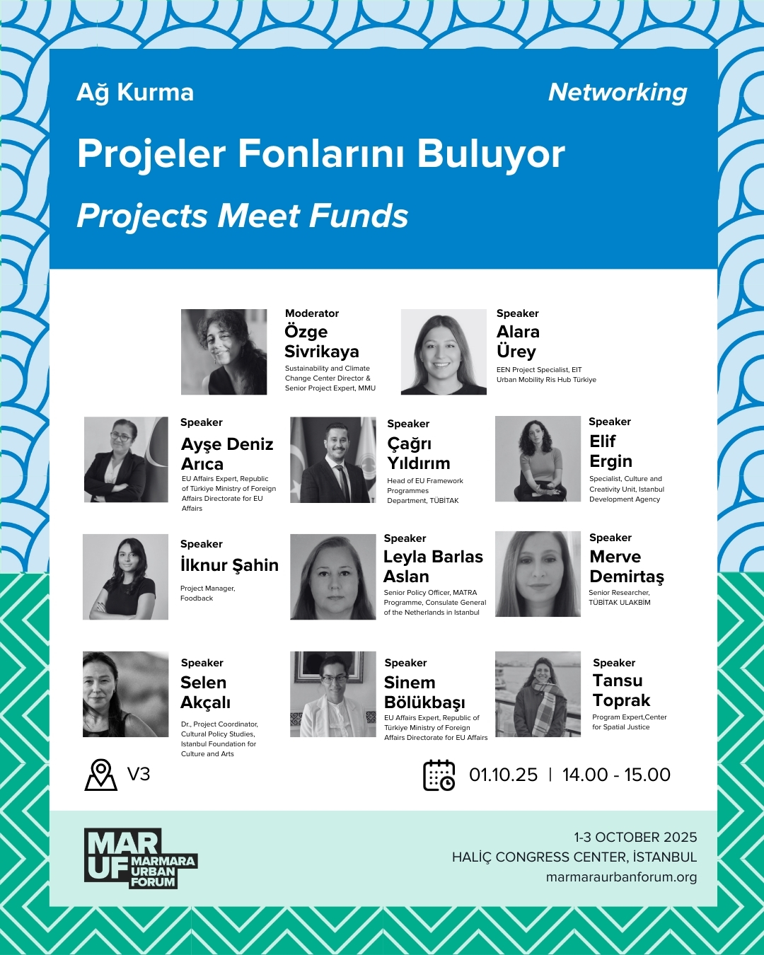 MARUF25 kapsamında düzenlenecek ağ kurma etkinliği “Projeler Fonlarını Buluyor” oturumunda proje sahipleri, hibe sağlayıcılarla bir araya getirerek hem bilgi hem de bağlantı paylaşımında bulunacak. Etkinlikte, farklı hibe programlarının temsilcileri başvuru süreçlerine dair pratik bilgileri aktarırken; katılımcılar birebir görüşmelerle projeleri için uygun destekleri keşfetme fırsatı bulacak. Ortaklaşa: Kültür, Diyalog ve Destek Programı proje yöneticisi Selen Akçalı’nın da konuşmacı olarak yer alacağı etkinlik 1 Ekim 2025 Çarşamba günü saat 14.00’te başlayacak.